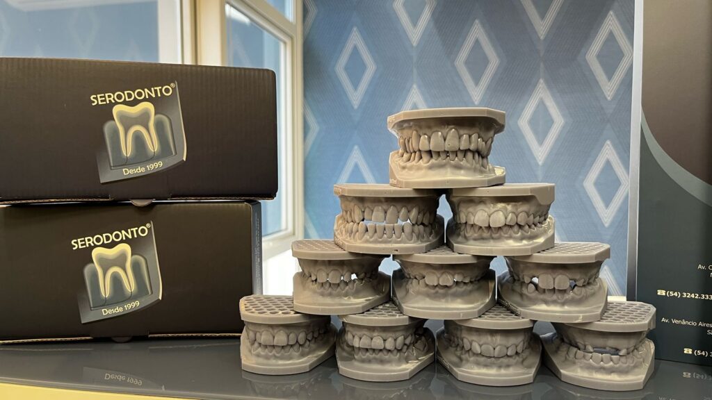A impressão 3D na odontologia permite a criação de modelos, próteses e guias cirúrgicos personalizados com alta precisão, otimizando o tempo de tratamento e melhorando os resultados clínicos.